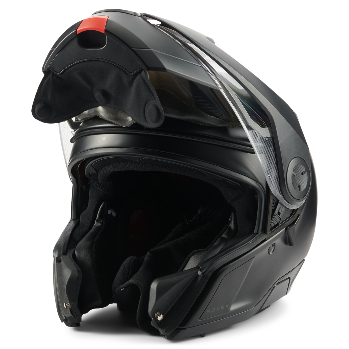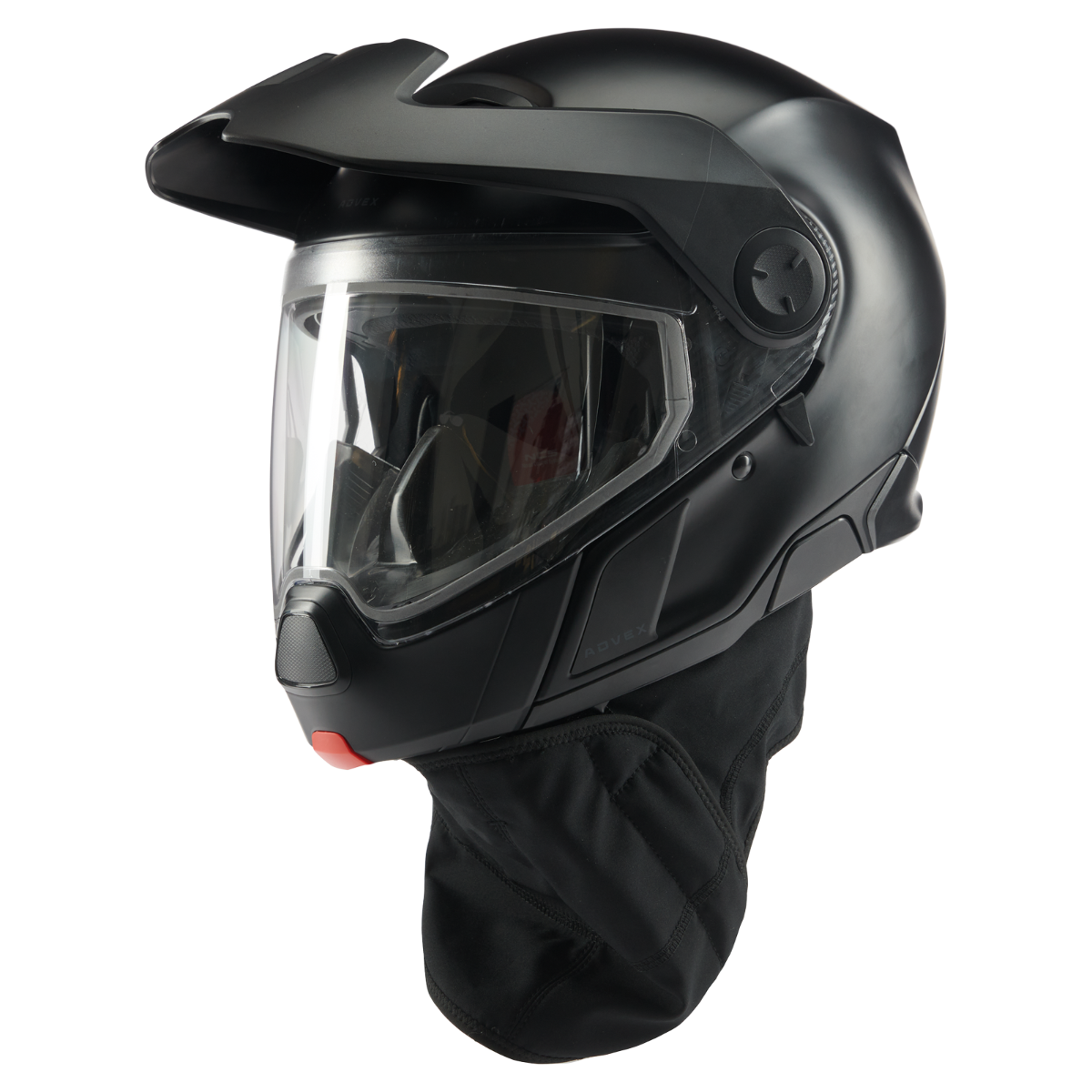 Combining revolutionary design with cutting-edge technology, the Advex Sport Helmet is here to redefine what’s possible. This new Ski-Doo snowmobile helmet is DOT and ECE-certified and has an innovative modular design to provide unmatched convenience, protection and flexibility while you’re kicking up fresh powder. To enhance your riding experience, the Ski-Doo Advex Helmet features maximum airflow technology, ensuring optimal ventilation for long-time comfort during high-intensity rides. The best part? This dual-sport snowmobile helmet is specially engineered to seamlessly integrate with the Vibe Communication System, so you can stay in touch with your riding crew, coordinate your next move, and conquer the trails together. Technology & Features Full Face Access: Innovative and safe full face opening system. Humidity Control: Breathguard mask system for moisture management. Communication Ready: Optional VIBE Mesh winter-integrated communication system. Ventilation & Airflow Adjustable Vents: Integrated vent in dual lens visor for airflow control. Neck Skirt: Reduces air intrusion. Vision & Eyewear Compatibility Field of Vision: Panoramic, unobstructed view. Visor: Dual lens anti-fog visor. Amber sun visor included for best vision in snowy conditions. Tinted and retractable sun visor. Eyewear: Compatible with prescription glasses. Lighting & Safety Side Light: Optional LED utility light. Certification: DOT/ECE approved. Design & Materials Shell: Recyclable M-FORGE® Composite for minimal environmental impact. Aerodynamics: Designed to reduce neck fatigue. Operation: All features operable with gloved hands. Fit & Sizing Fit: Helmet should be snug; it will break in and loosen slightly over time. Shell Sizes: Two shell sizes and four EPS sizes for optimal fit and comfort. Weight: Approx. 1825 g ± (size Large), 1895 g ± with peak. Chin Strap: Quick-release system. Warranty Coverage: 4-year limited warranty.