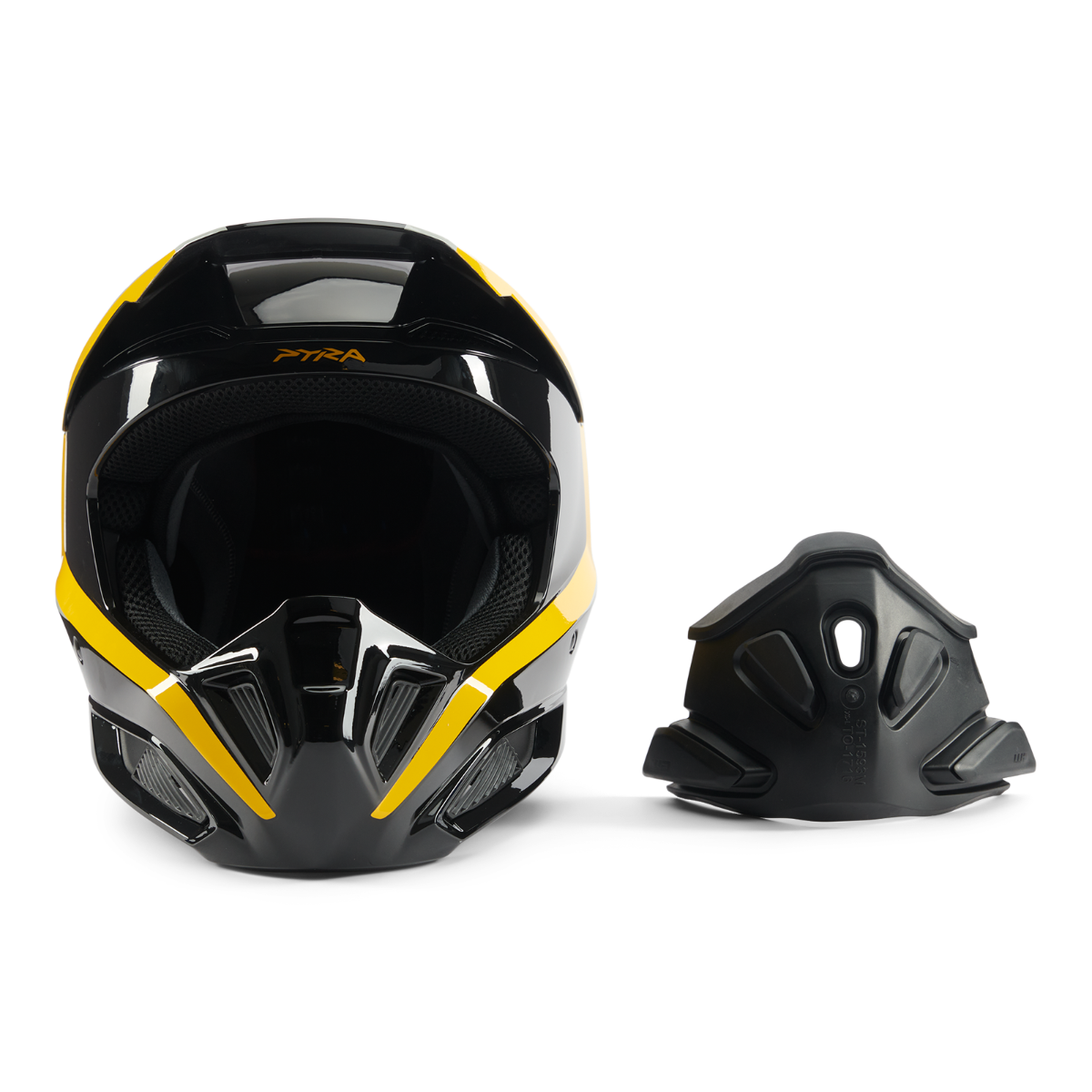 Chase the thrills in our flagship Pyra Helmet, now available with subtle and traditional X-Team design aesthetics. The Pyra X-Team Edition Helmet is built to protect your head no matter the conditions. This DOT/ECE 2206-certified, lightweight snowmobile helmet features an advanced plastic composite shell and a rotational impact-absorbing system for added protection. Hi-max air vents at the front and rear let you maximize cool airflow, while a removable wind deflector keeps it out of your eyes. After a high-intensity day on the snowmobile, the moisture-wicking liner is removable and washable, so you feel fresh every time you gear up. Technology & Features ERT System: Shell with rotational impact absorbing system. Ventilation & Airflow Ventilation System: Front and rear Hi-Max air vents to maximize cooling. Vision & Eyewear Compatibility Field of Vision: Wide and unobstructed view. Visor: Removable wind deflector. Eyewear: Compatible with prescription glasses. Lighting & Safety Certification: DOT/ECE approved. Environmental & Ergonomic Design Shell: Advanced Plastic shell for durability and impact protection. Liner: Removable, washable, and replaceable moisture-wicking liner. Fit & Sizing Fit: Helmet should be snug; it will break in and loosen slightly over time. Shell Sizes: Two shell sizes for optimal fit and comfort. Weight: Approx. 1310 g (size Large). Chin Strap: D-Rings system. Warranty Coverage: 4-year limited warranty.
